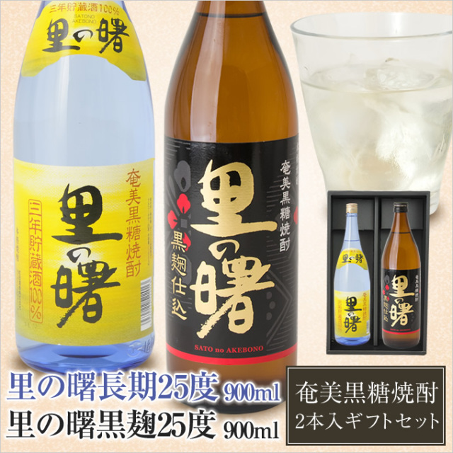 奄美黒糖焼酎里の曙黒麹25度900ml・奄美黒糖焼酎里の曙長期25度900ml・2本入りギフトセット/送料無料